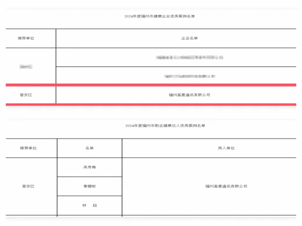 近日,福州市卫生健康委员会公布《关于公布2024年度福州市健康企业和职业健康达人优秀案例的通知》。